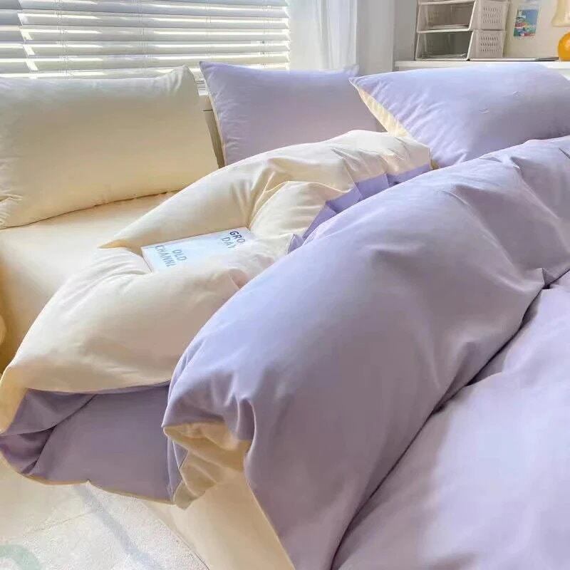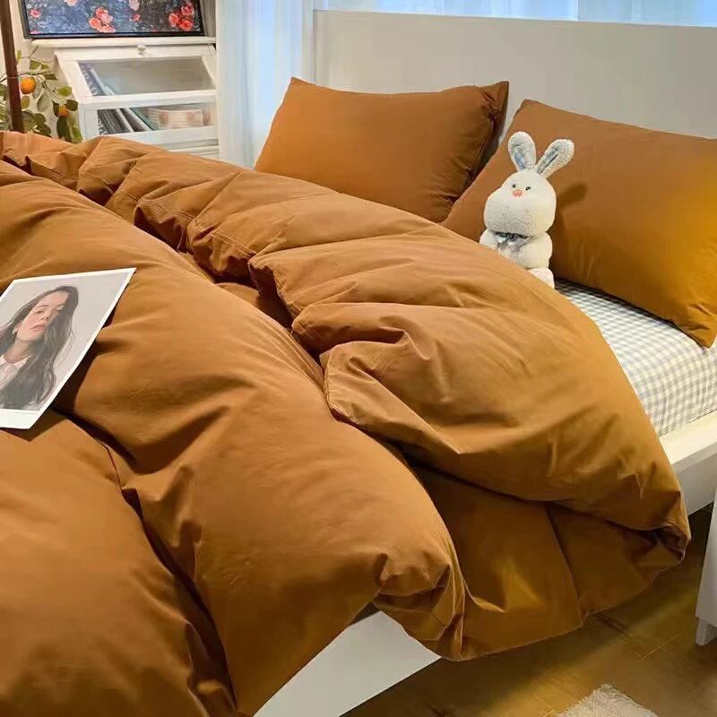 布団カバー 水洗綿 シングル シンプル 寮布団 ベッド4点セット 無地 ウォッシュド コットン 寝具 4点セット 3点セット マルチカラーオプション 掛け布団カバー シーツ