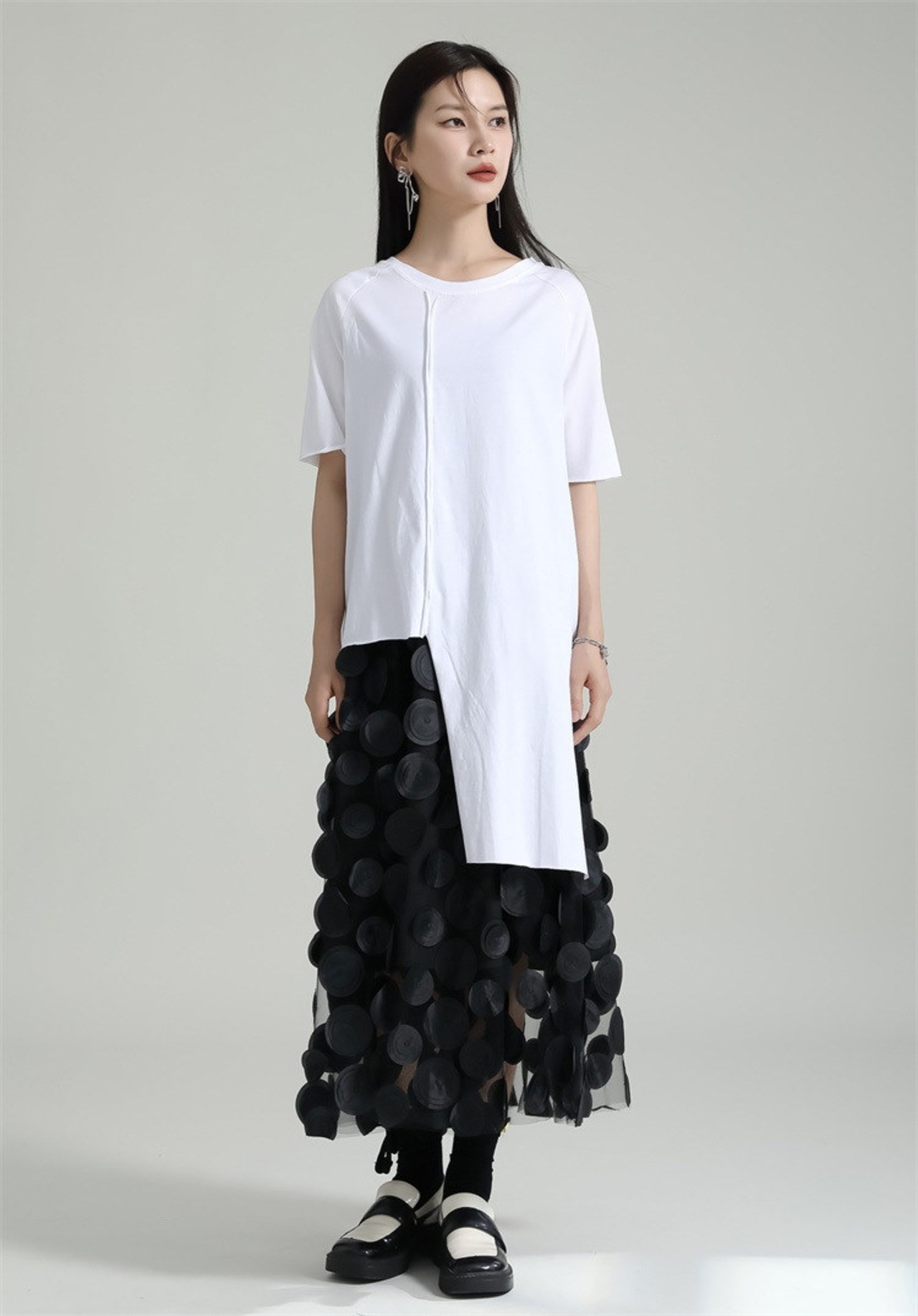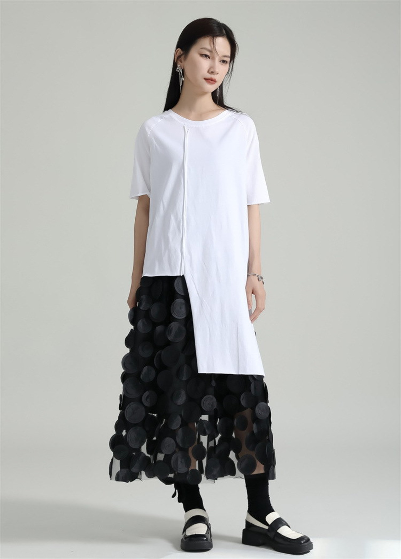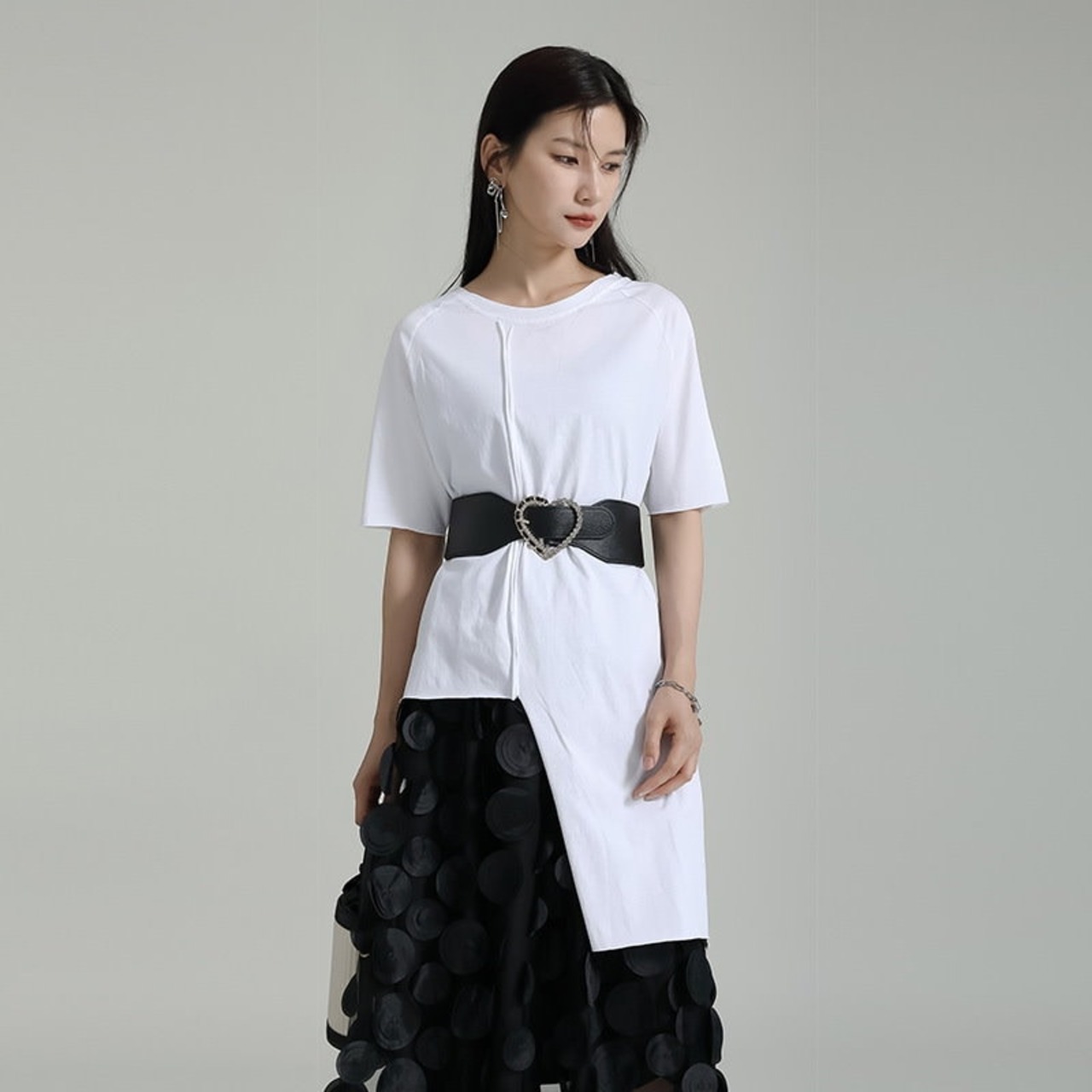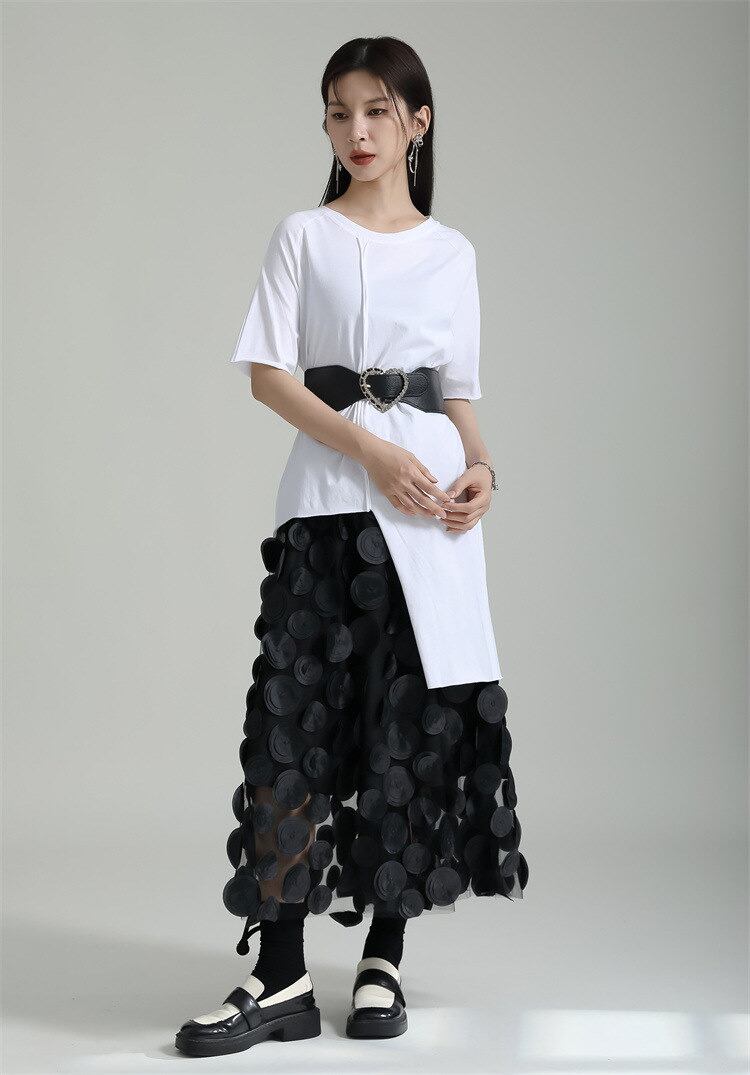 夏 Tシャツ 不規則裾 スリット カジュアル ブラウス 半袖 レディース おしゃれ 上質 関連商品は店で購入可能