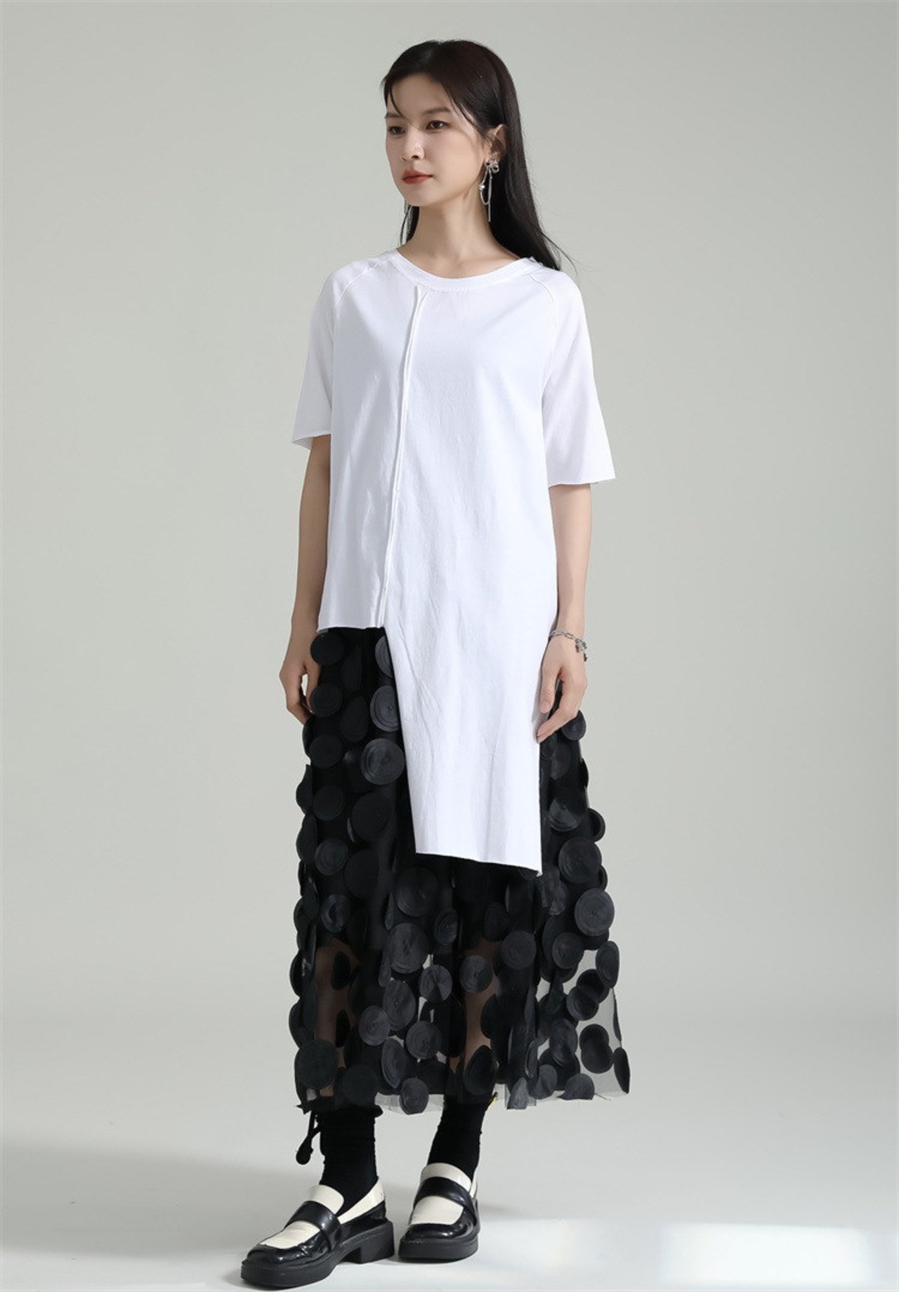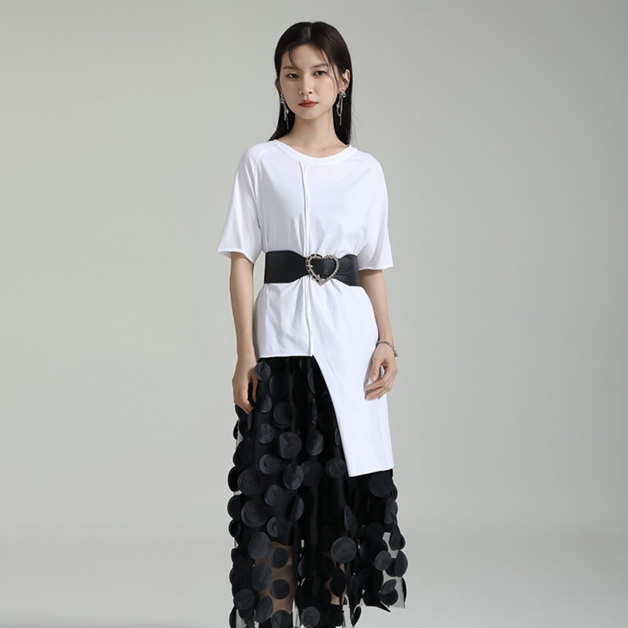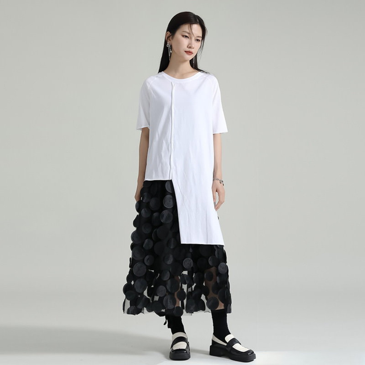夏 Tシャツ 不規則裾 スリット カジュアル ブラウス 半袖 レディース おしゃれ 上質 関連商品は店で購入可能