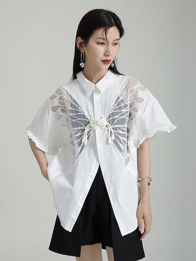 リバーシブル 両面で着られる 半袖 蝶 花柄 夏 ブラウス レディース レディース おしゃれ 上質 関連商品は店で購入可能