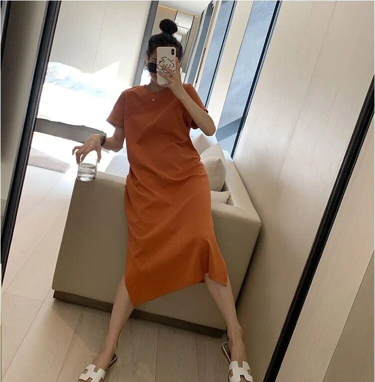 ビーチワンピ ルームウェア 2way 背中見せ ロングワンピース 夏 ゆったり 着やせ 半袖 Tシャツワンピース スリットColor: ホワイト パープル オレンジ Size: M L XL 2XL