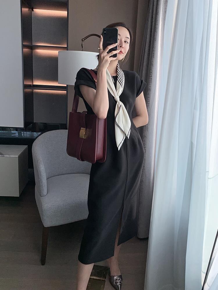夏 着痩せ レディース ワンピース 引き締め 半袖 裾スリット 白 ロングワンピースColor: ホワイト ブラック Size: S M L XL