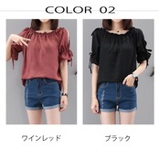 シャツブラウス オフショルダー 紐付き