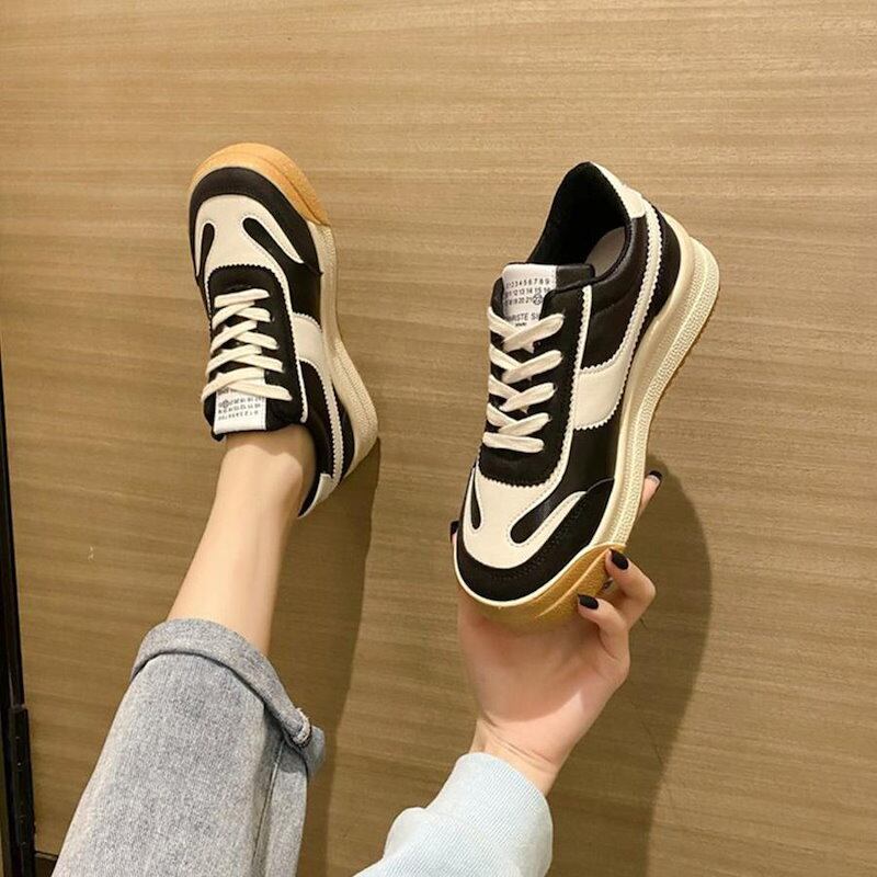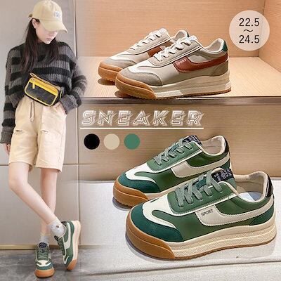 厚底スニーカー 韓国 レディース 配色カラー: ブラック ベージュ グリーン サイズ: 22.5cm(1) 23.0cm(2) 23.5cm(3) 24.0cm(4) 24.5cm(5) 25cm