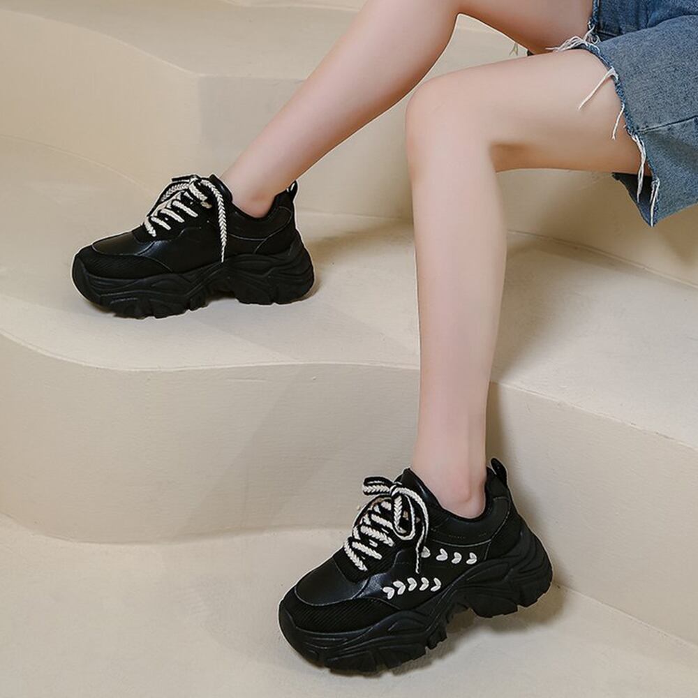 韓国風 ボリューム厚底スニーカー 黒カジュアル スポーティー 美脚 疲れにくい プラットフォーム 歩きやすい靴 春夏秋冬