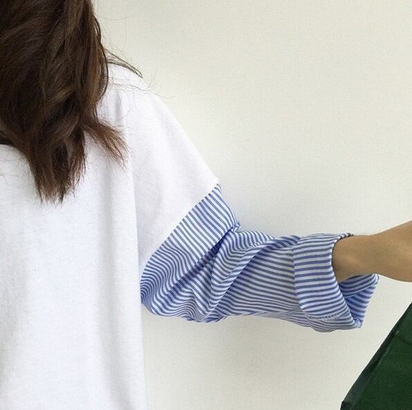 ストライプステッチ長袖Tシャツ5色日本の爆発的なルーズオールマッチ