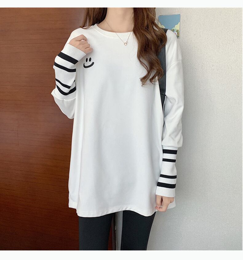 コットントップルーズ韓国風刺繍スマイリー長袖ボトミングシャツType: ブラック ホワイト ブラック厚い ホワイト厚い Size: M L XL 2XL