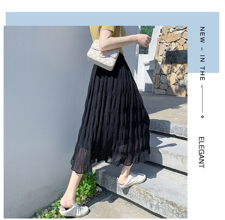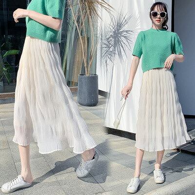 韓国ハーフレングススカート女性夏新作スタイルホワイトシフォン優しいプリーツスカートロングワイルドで薄