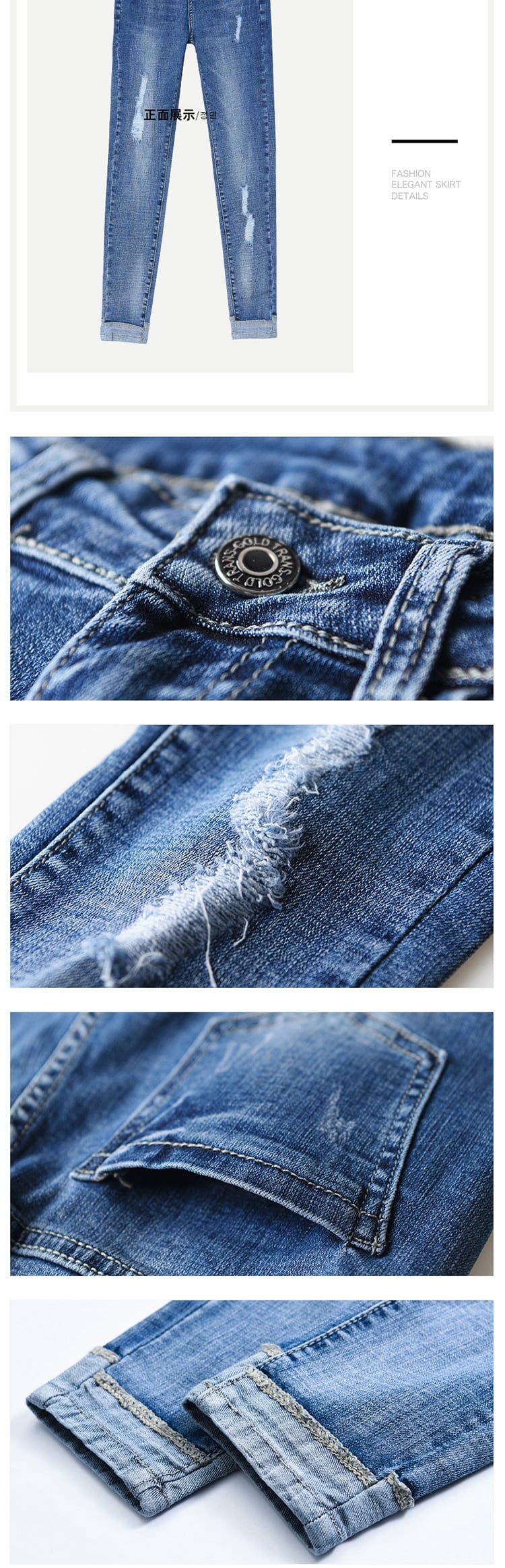 新しいジーンズの韓国語バージョンは薄くて細いファッショナブルな9ポイントのパンツペンシルパンツズボン2つのスタイルColor: 穴タイプライトブルー 穴なしライトブルー 穴タイプブルー 穴なしダークブルー Size: 26 27 28 29 30(+100) 31(+100) 32(+100)
