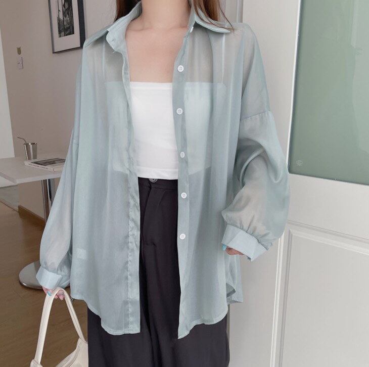 8色選べるおしゃれな日焼け止めシャツシャツブラウス薄手のシースルーアウター夏の新デザイン感シフォンシャツの上の服