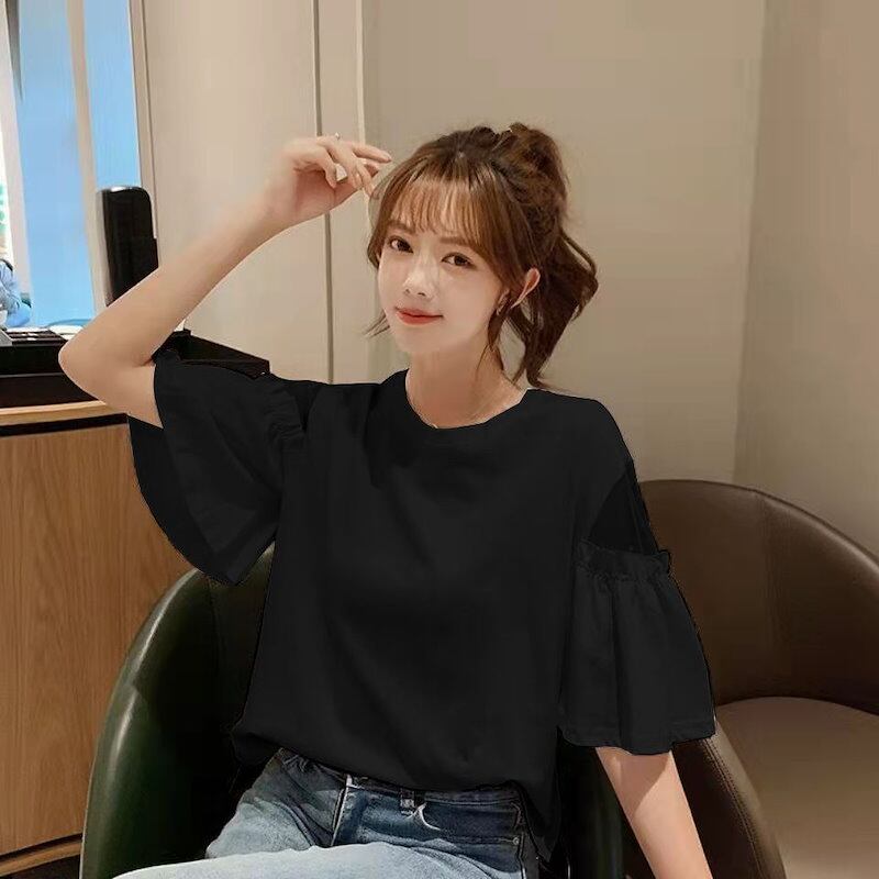 フレア袖ブラウス Tシャツ2023新型韓国版ファッション学生ゆったり半袖tシャツ肩出しトップス夏