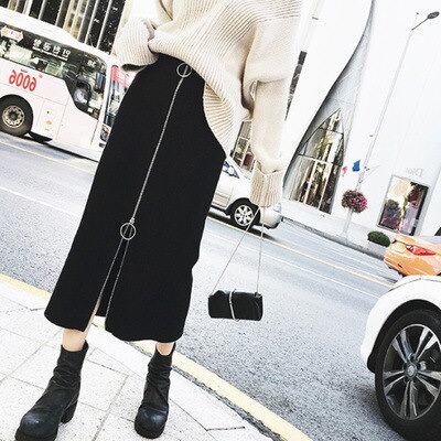 フロントリングジッパースカート 韓国ファッション スカート タイトスカート 着痩せ ロングスカート大小: M L XL