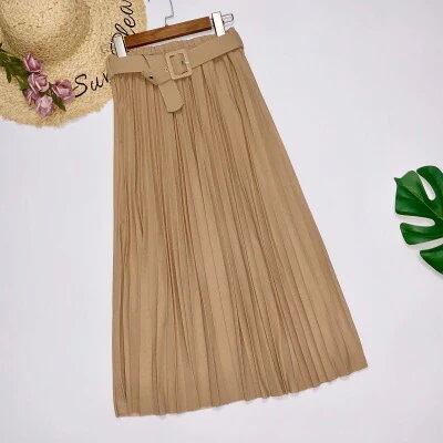 新色追加 ベルトを贈る新作生地ドレープ風プリーツスカートハイウエストラージスカートスカートマルチカラーミドル丈コミューター