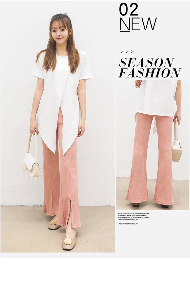 春夏新作韓国版7色オプションハイウエストスリムストレッチフロントスリットリブフレアパンツ型号名称: H-001 H-002 H-003 H-005 H-006 H-007 H-008 大小: M L