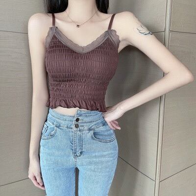 韓国のホットスタイルのレースキャミソールアウターベースの下着胸パッド付きのセクシーなブラ美しい背中の