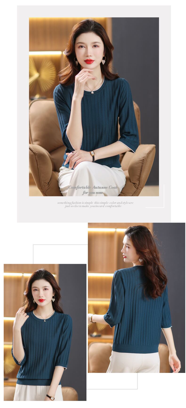 韓国版新型七分袖Tシャツ春夏ファッション薄手アイスニットニットトップスType: H11 h22 H33 H55 H66 H77 Size: M L XL