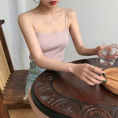 韓国スタイルのベーシック無地ウェーブスリング無地ニットベスト女性2021
