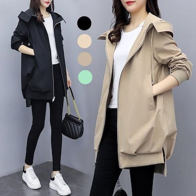 ロング ポケット フード ファスナー オーバーフィット ジャンパーブルゾン ディース コート アウター 秋冬 長袖 大きいサイズ 防寒 40-80kgカラー: ブラック カーキ グリーン アイボリー サイズ: S(+300) M(+300) L(+300) XL(+300) 2XL(+300) 3XL