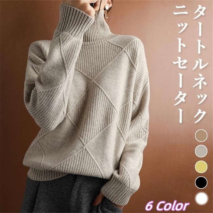 2022秋冬セータータートルネックヘッダーひし形セーター無地ゆったりプルオーバー