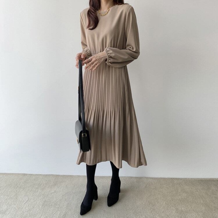 2023韓国レディース ワンピース プリーツワンピース 春秋ワンピ ロング ワンピース