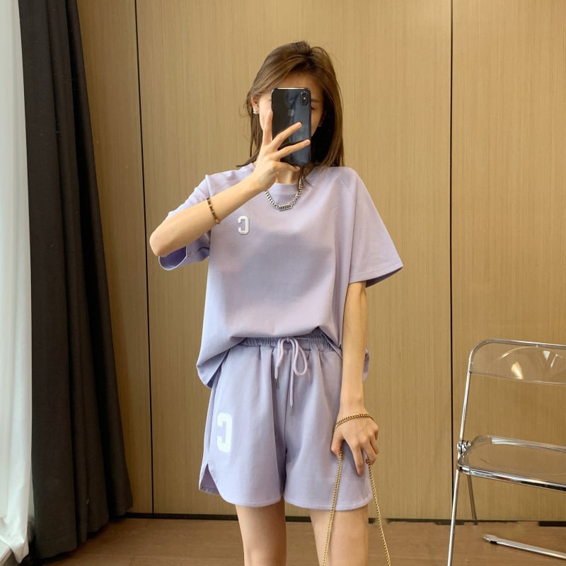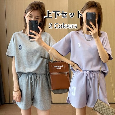 2023春夏韓国ファッション上下セット ジャージ パーカーメンズ ビッグシルエット スウェット ジャージセット男女兼用半袖パーカーカップル可愛いコーColor: Purple Gray