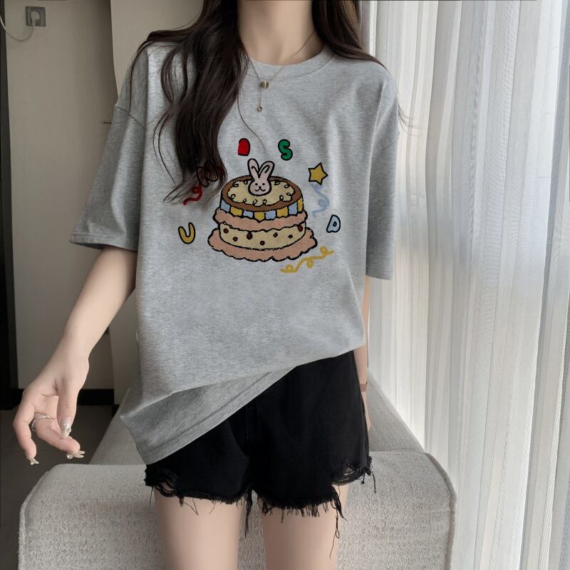 Tシャツ半袖 綿レディース トップス男女兼用 大きいサイズ 韓国ファッション 上着 ゆった プリント