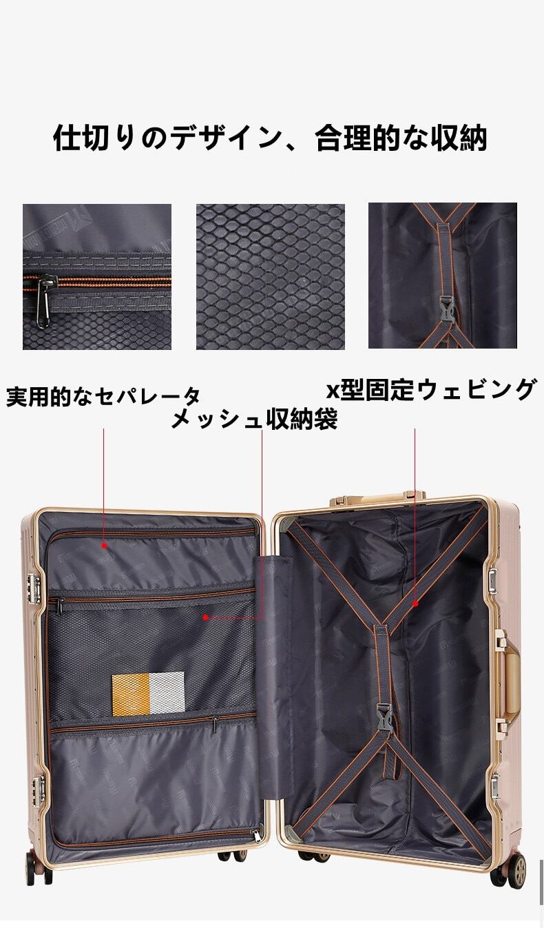 マルチカラースーツケース スーツケーススーツケース携帯機内TSAロック超軽量大容量修学旅行アルミフレーム超軽量スーツケース