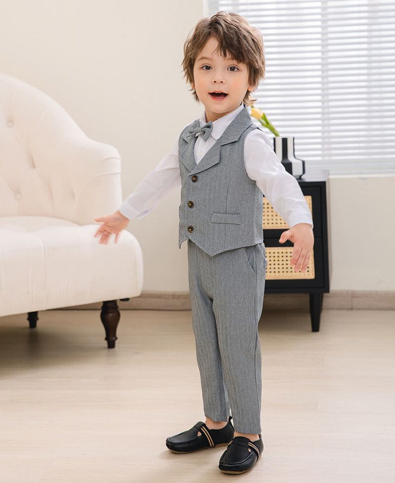 入学式 男の子 スーツ 4点セット 子供スーツ 卒業式 フォーマル スーツ キッズスーツ 小学生 シャツ+ズボン+ベスト+蝶ネクタイ こどもスーツ タキシード ジュニア 子供服 紳士服 卒園式 細身