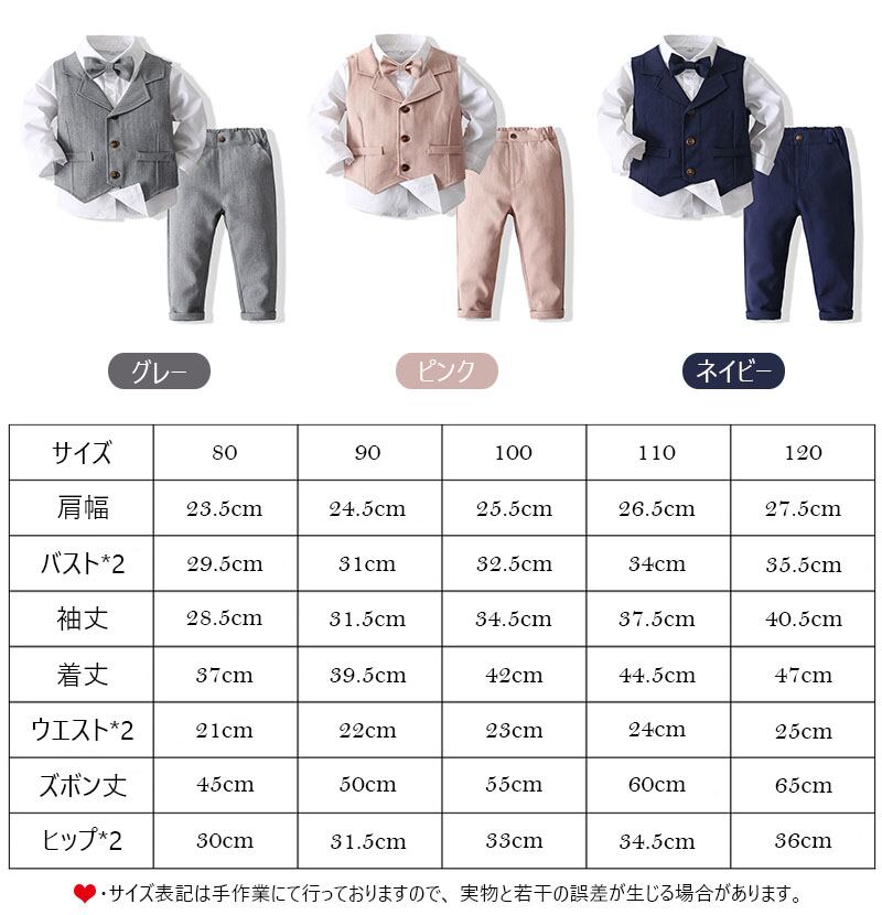 入学式 男の子 スーツ 4点セット 子キッズ ベビー マタニティ 新作horizontal-key: グレー ネイビー ピンク vertical-key: 80cm 90cm 100cm 110cm 120cm