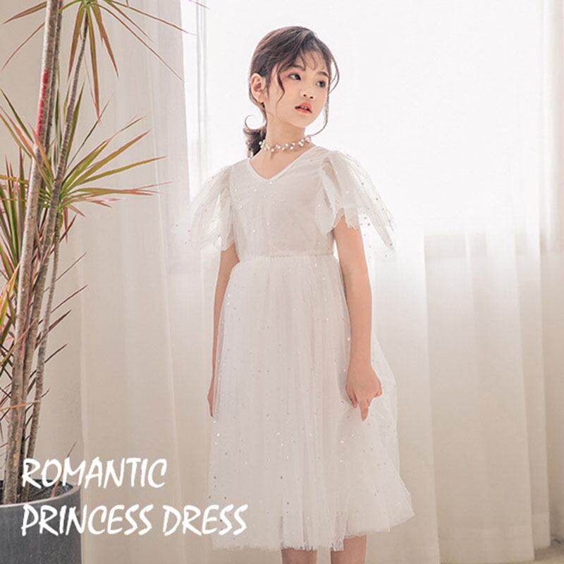 レースワンピース 子供ドレス 女の子 ワンピース フォーマル 子供服 ドレス ノースリーブ 袖フリル 結婚式 七五三 パーティー 刺繍 チュール ピアノ 発表会 入園 入学 バースデー キッズ 発表会 80 90 100 110 120 130cm 送料無料