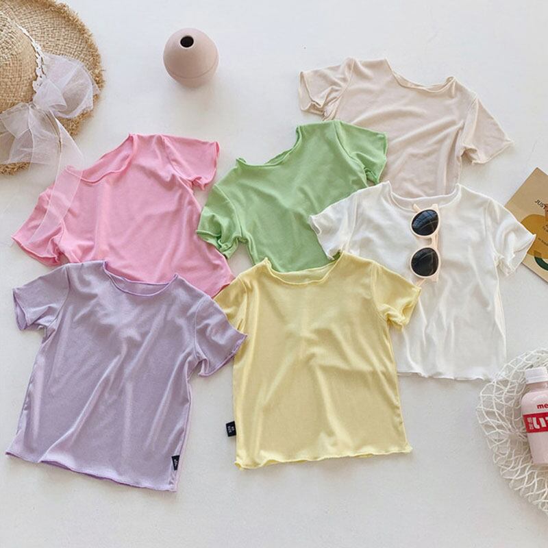 子供服 半袖Tシャツ ベビー服 女の子 半袖 Tシャツ 袖フリル ストレッチ 半そで 無地 ベビー キッズ 可愛い シンプル トップス 綿100% 夏 夏服 80 90 100 110 120