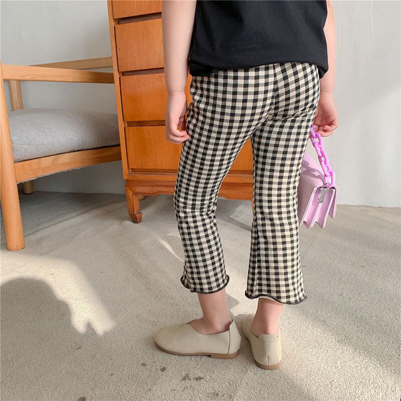 春新作 子供服 キッズ パンツ ズボン ストレッチ フレアレギンス 子供服 キッズ 子ども服 こども服 フレアパンツ 女の子 9分丈 伸縮性 チェック 無地 ブラック コットン おしゃれ かわいい シンプル ボトム ズボン 送料無料 メール便