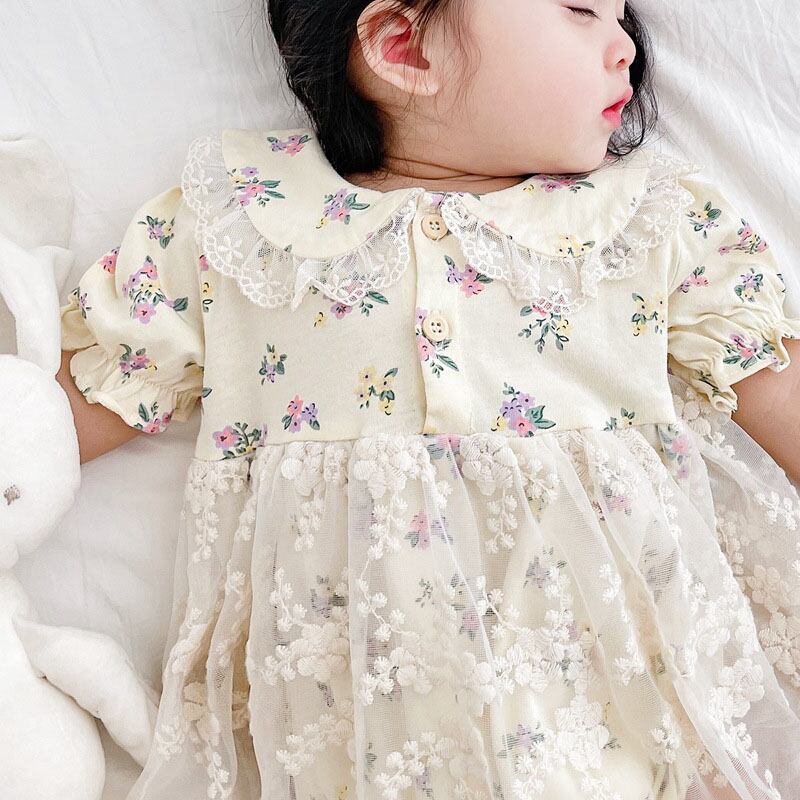 ベビードレス ベビー ワンピース ベビー服 ベビーロンパース 半袖 幼児 女の子 誕生日 結婚式 新生児 かわいい フォーマル キッズ 膝丈 お姫様風 ふんわり ふわふわ 春夏秋 綺麗 高級感 紗 無地