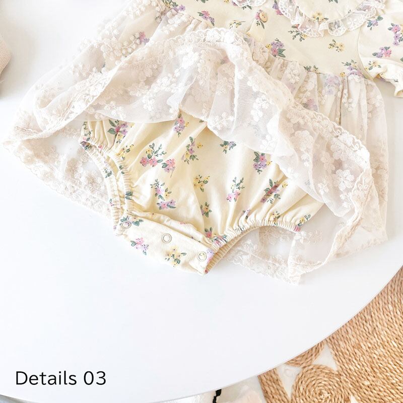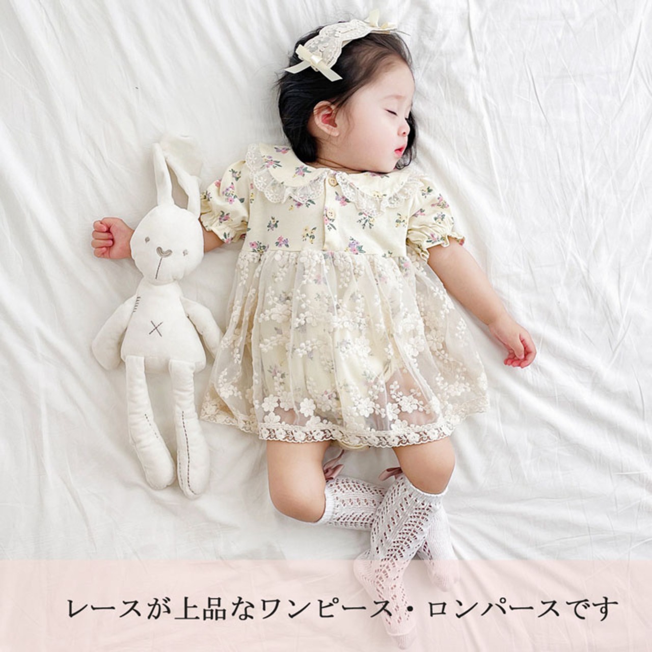 レースが上品なワンピース・ロンパースです。