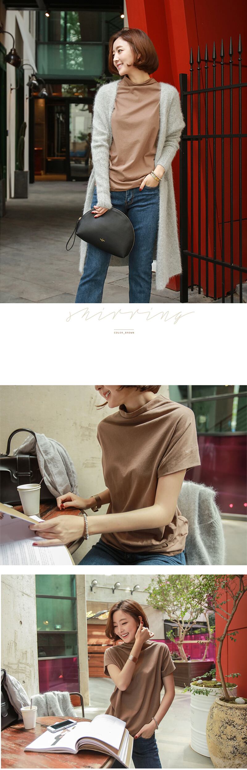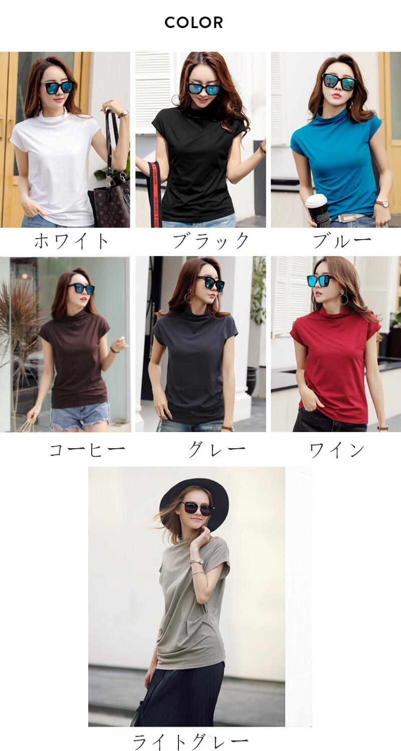 《tシャツ レディース 春 夏 秋 半袖 ドロップショルダー ボトルネック ハイネック ゆったり カットソー トップス 首元保護 UV対策 uvカット サイド スリット おしゃれ 綿100% 夏服