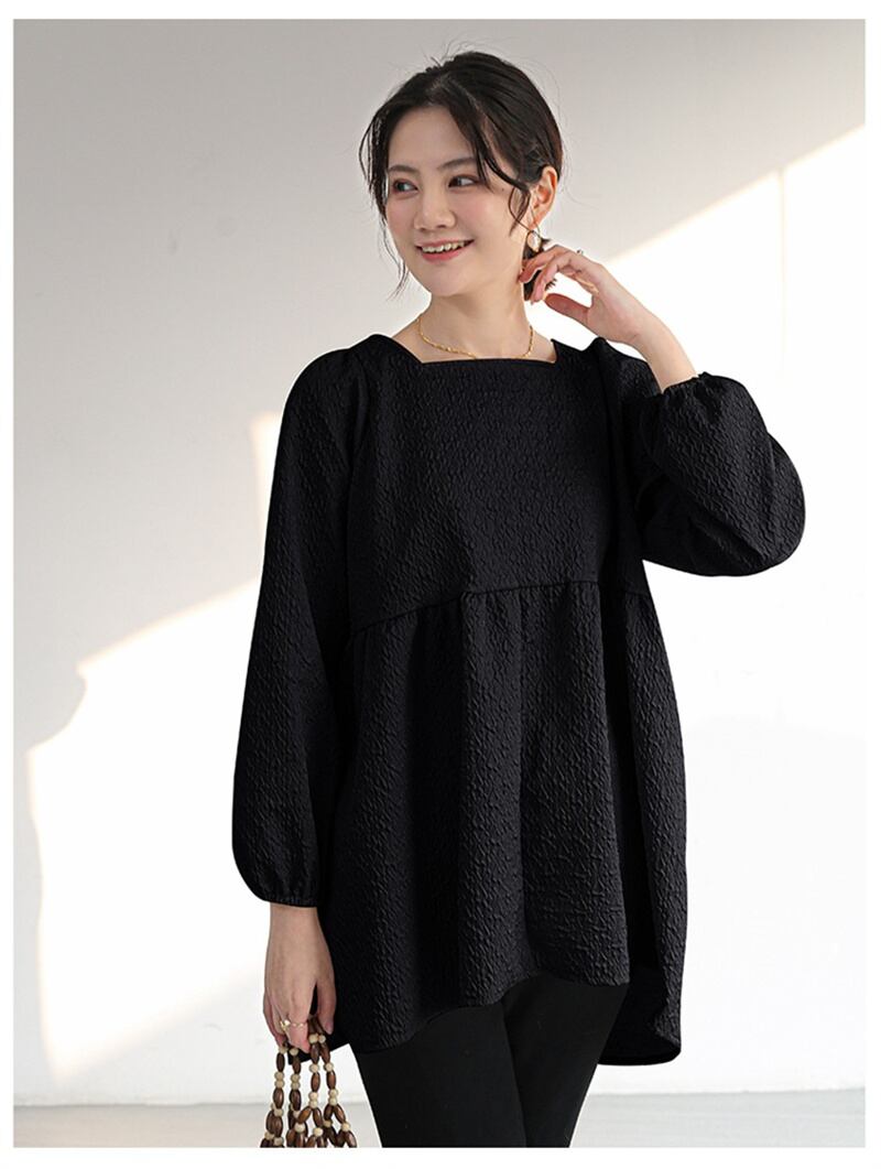 商品説明 凹凸感のあるふくれジャガード素材が特徴的なペプラムブラウス。
