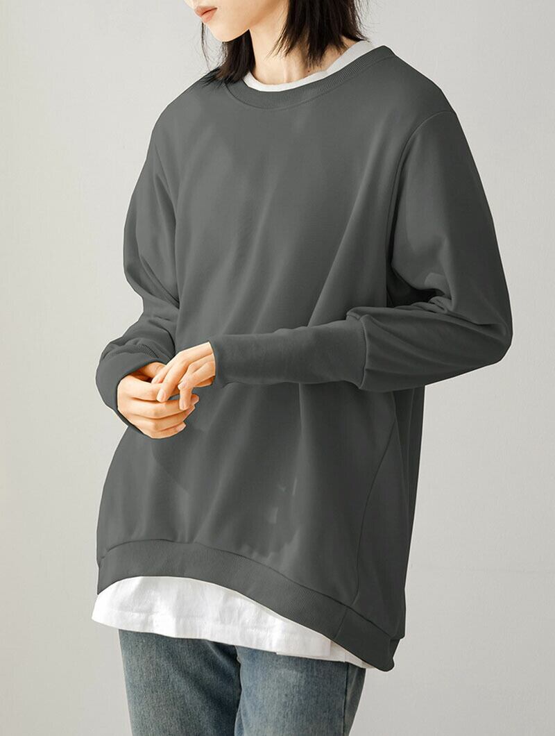 着心地の良ポリエステル混 全6色リニューアル トレーナー レディース スウェット リブ長 トップス 長袖 無地 ルームウェア 部屋着 秋 冬