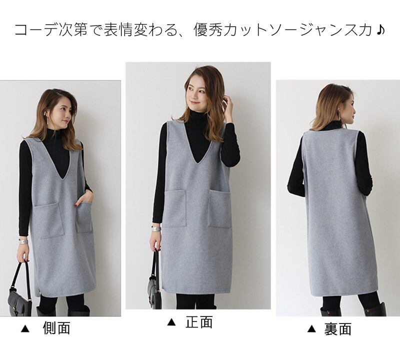 トレンドの切りっぱなしカット仕様 深めのVネックライン 簡単にラフでこなれたおしゃれに♪♪♪レディースファッション ワンピース