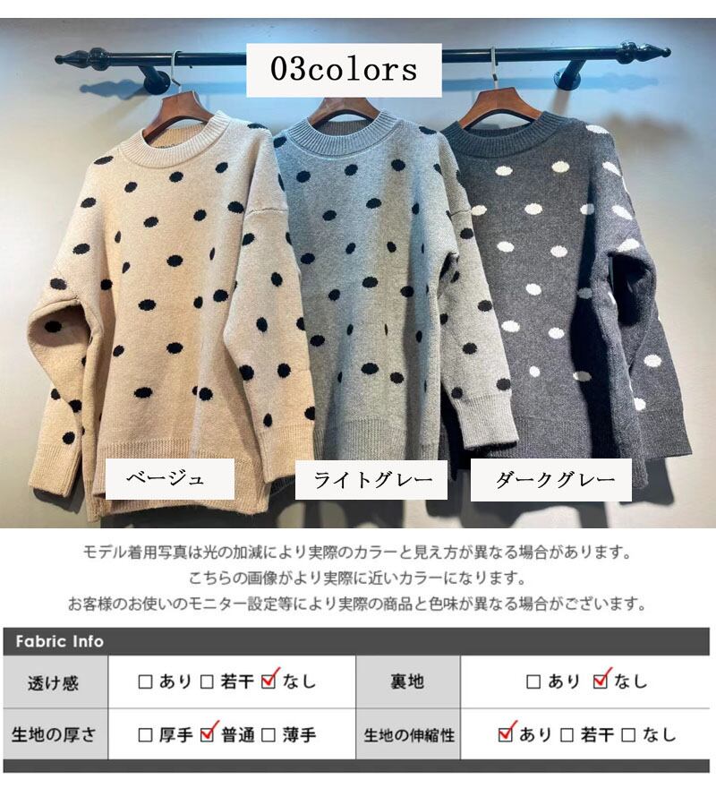 ドットニットトップス 大人可愛い トットップス ニット セーター セーター 豊富COLOR: ベージュ ライングレー ダークグレー
