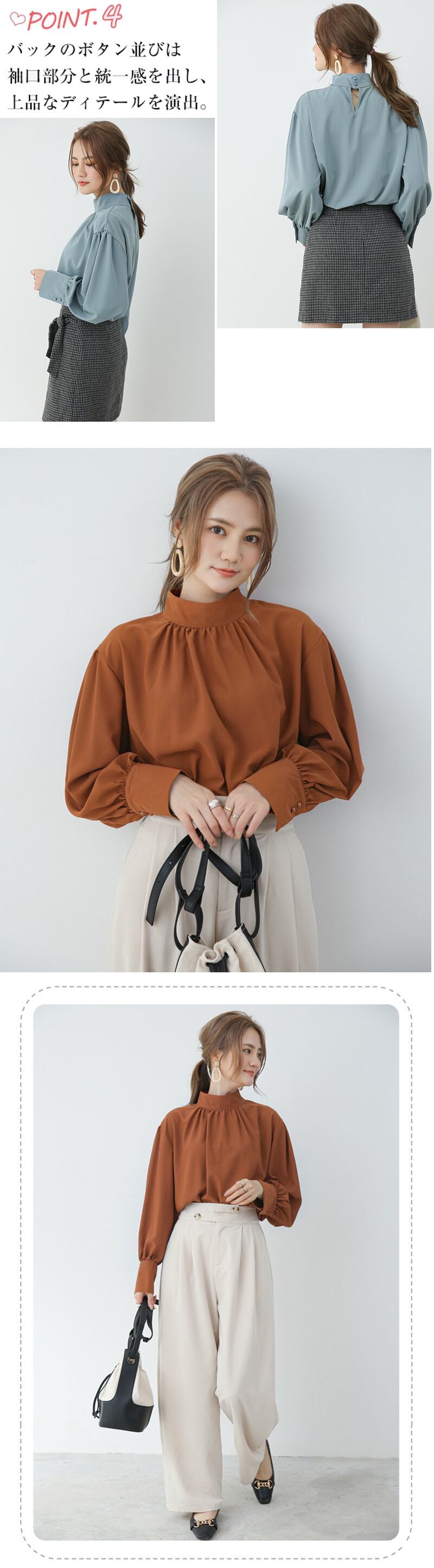 程よくボリュームを持たせたバルーン袖に、清潔感のあるスタイリッシュな袖口がこなれて見えるポイント。