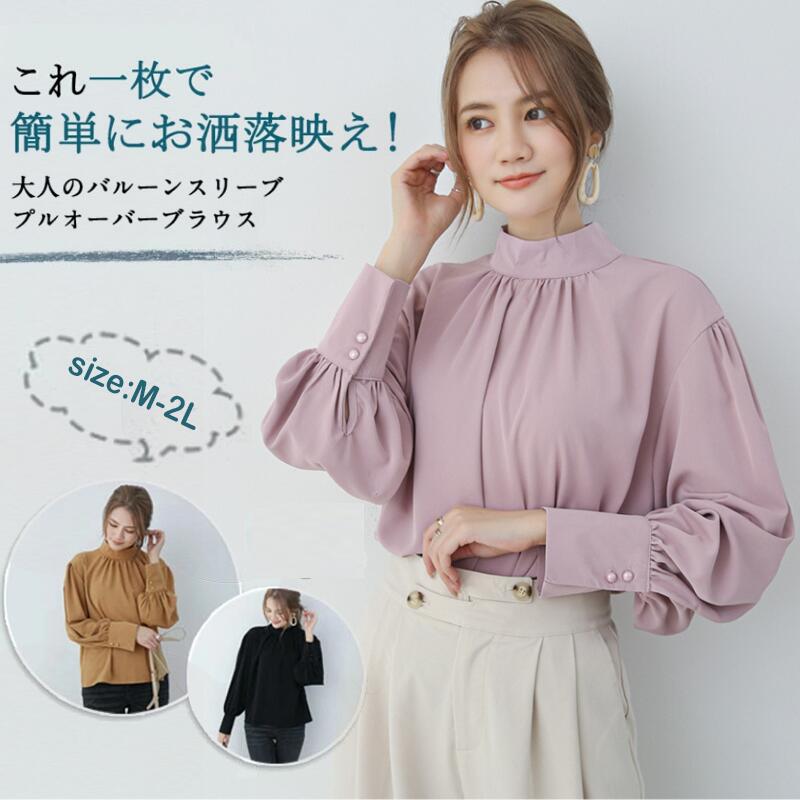 ブラウス バルーンスリーブ ブラウス トップス シャツ ブラウス 42%OffSIZE: M L 2L/XL COLOR: ピンク ブルー ベージュ ブラウン ブラック ホワイト