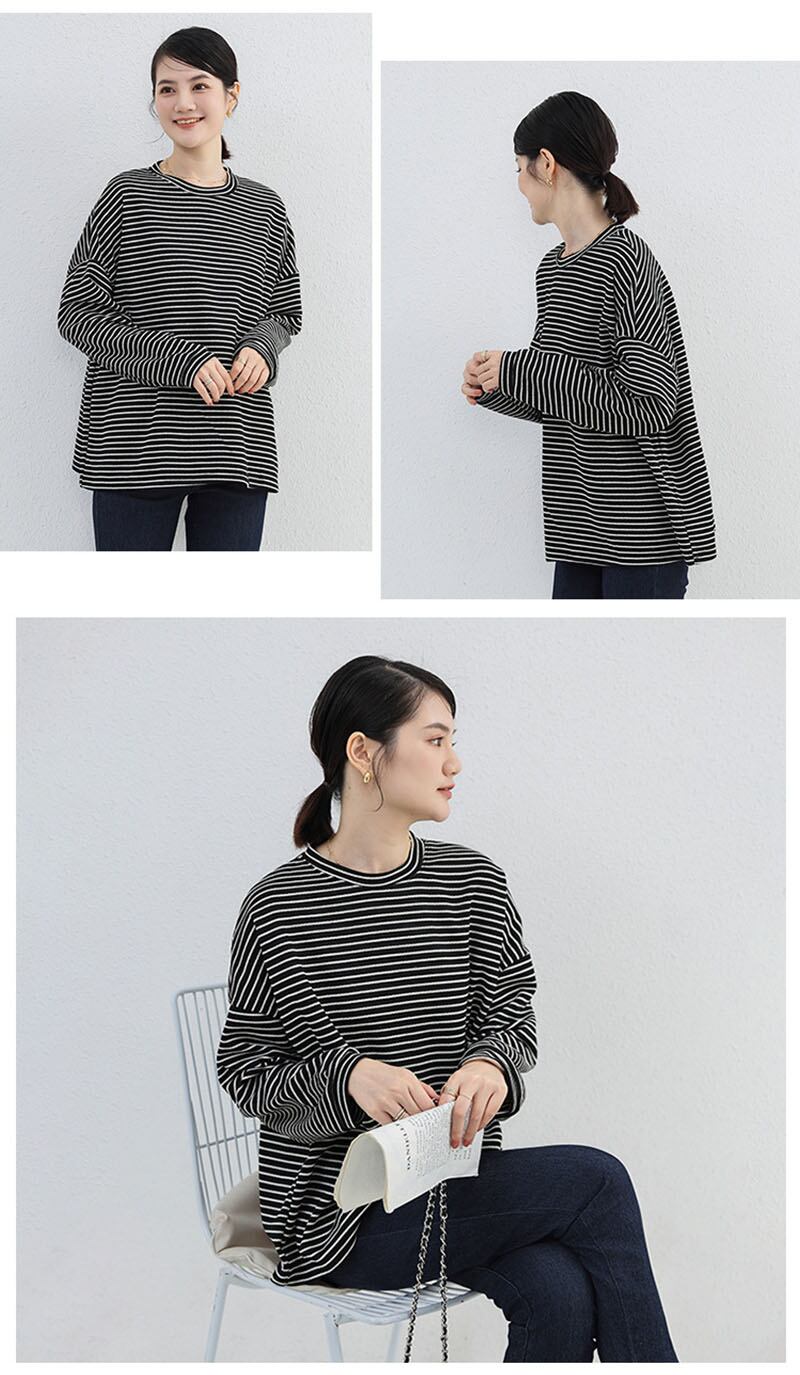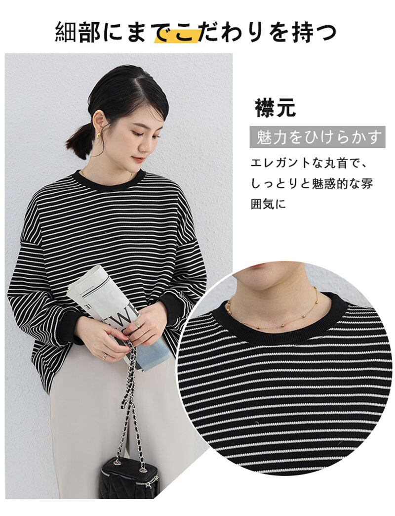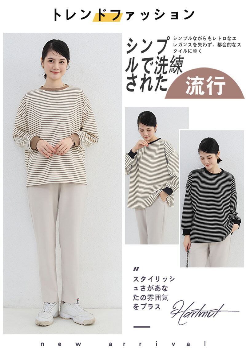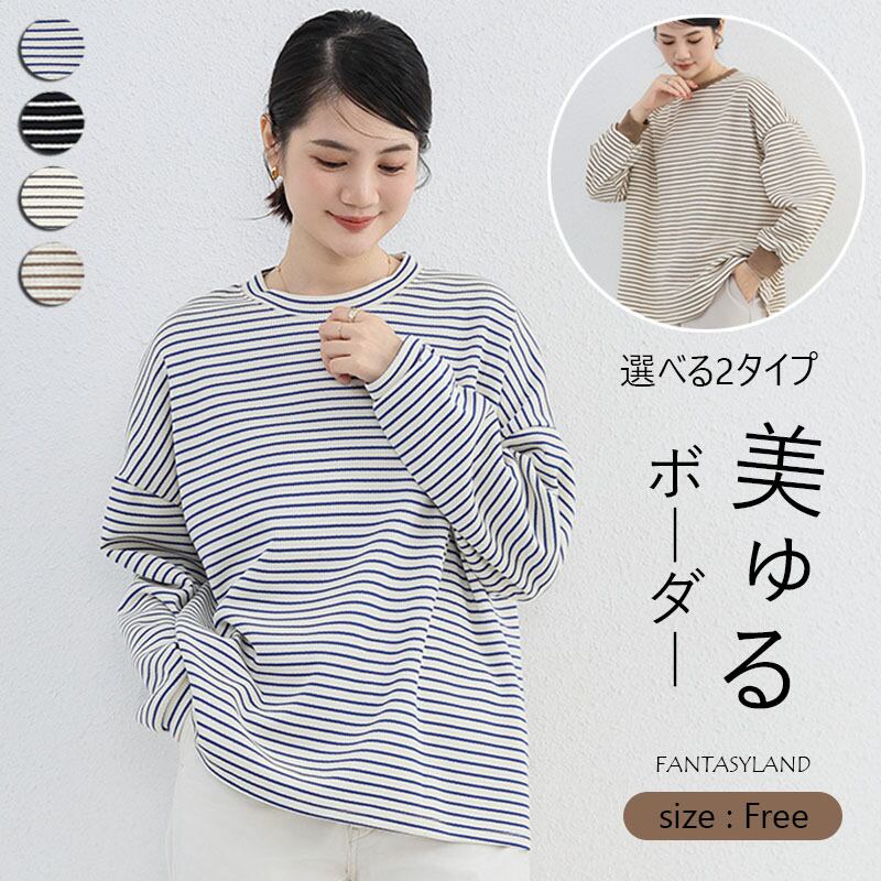 ボーダー トップス レディース カットソー ロンT 秋 カジュアル ゆったり 大きいサイズ オーバーサイズ 韓国 長袖 ドロップショルダー