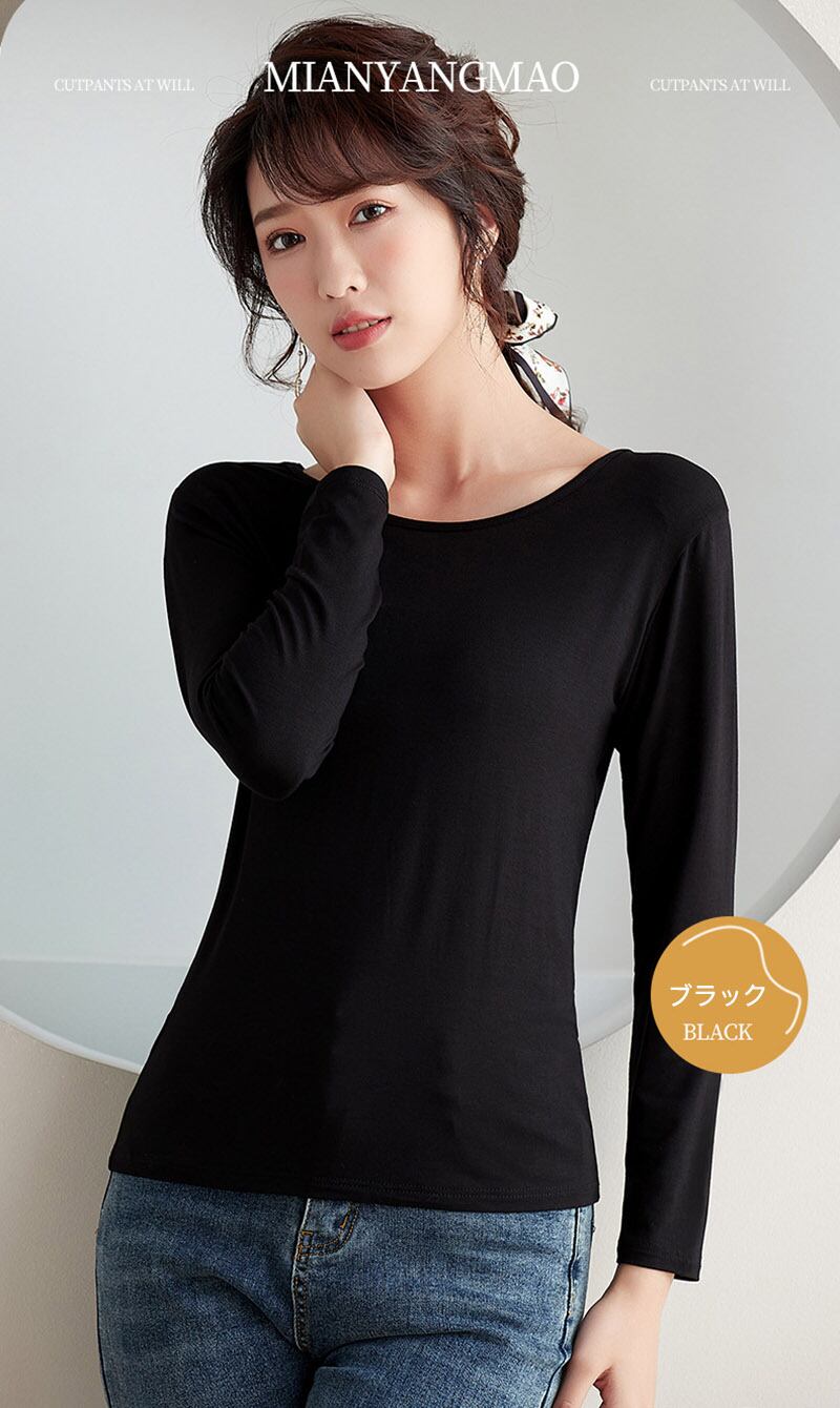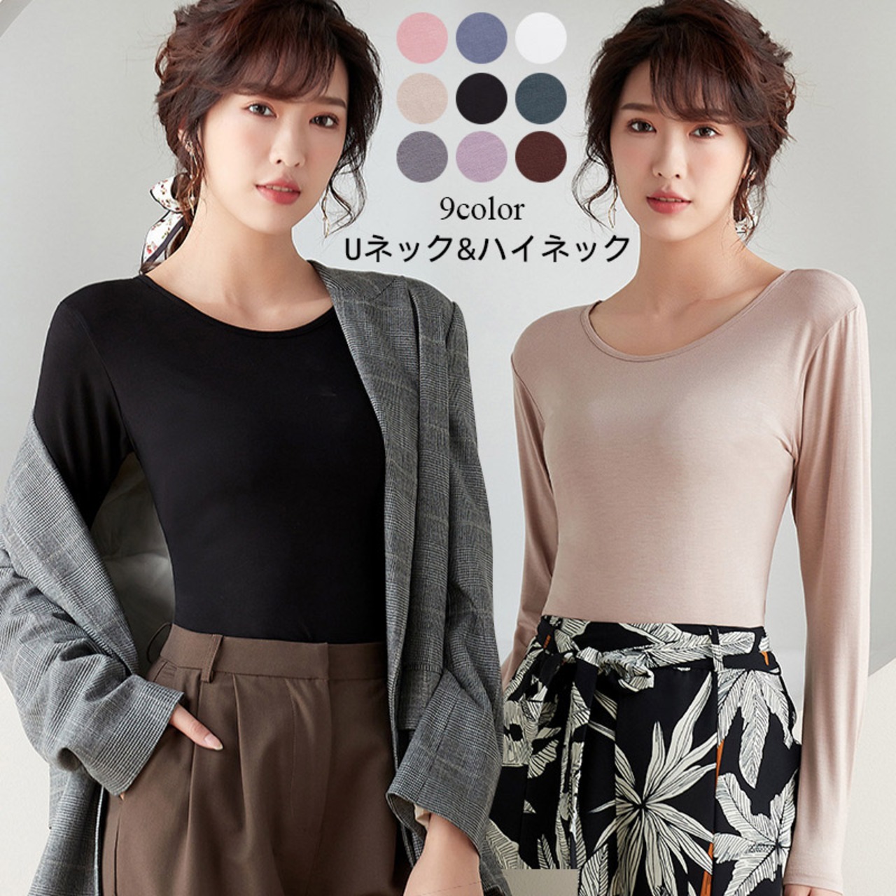 カットソー トップス[Vネック ハイネック ][ M L 2L 3L ]スムースTシャツ 長袖 レディース ロンTスーツ 丸首 シンプル ロング インナー 白 黒9色