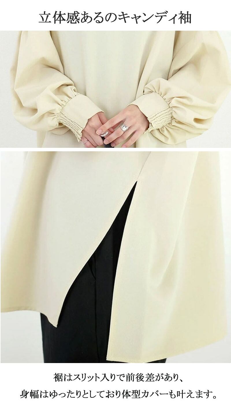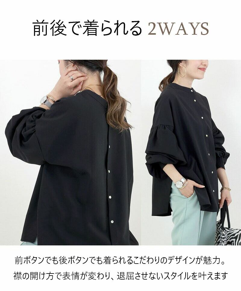 バックボタン ブラウス レディース ボリューム袖 ギャザー 袖ギャザー トップス シャツ 春 秋 冬 長袖 フレンチスリーブ 前後で着られる ゆったり きれいめ シンプル 柔らか 30代40代50代