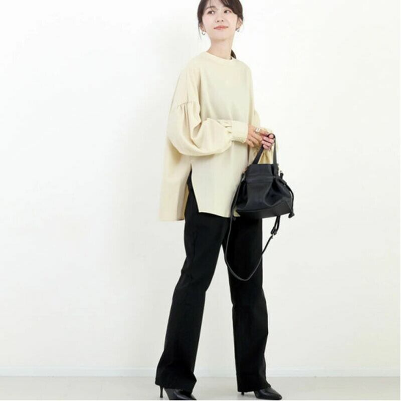 程よく厚みがあるので身体のラインを拾いにくく、綺麗なシルエットで着られるのが魅力。