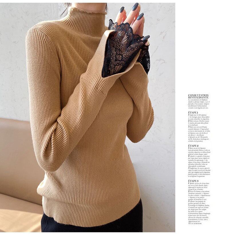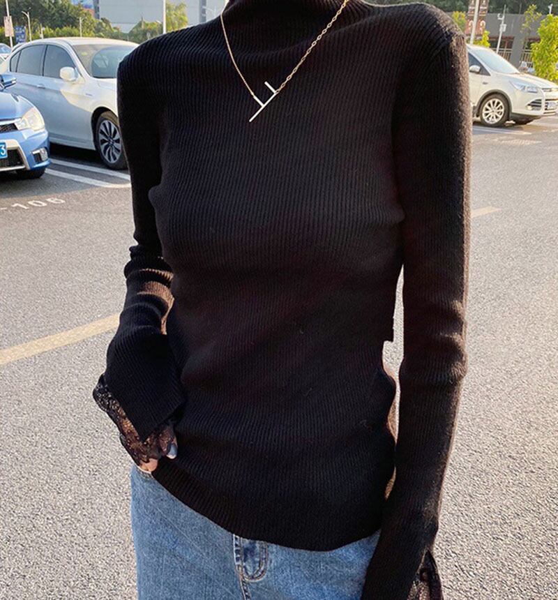 商品説明 オーガンジー刺繍入りシェイプタートルニットです。