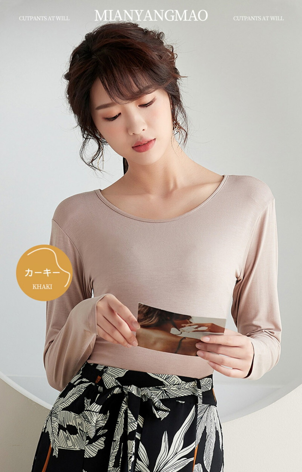 カットソー トップス[Vネック ハイネック ][ M L 2L 3L ]スムースTシャツ 長袖 レディース ロンTスーツ 丸首 シンプル ロング インナー 白 黒9色