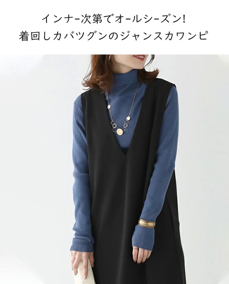 ワンピース レディース 深Vネック スリット ジャンパースカート 無地 体型カバー 春 秋 冬 レディース 高見え♪♪♪