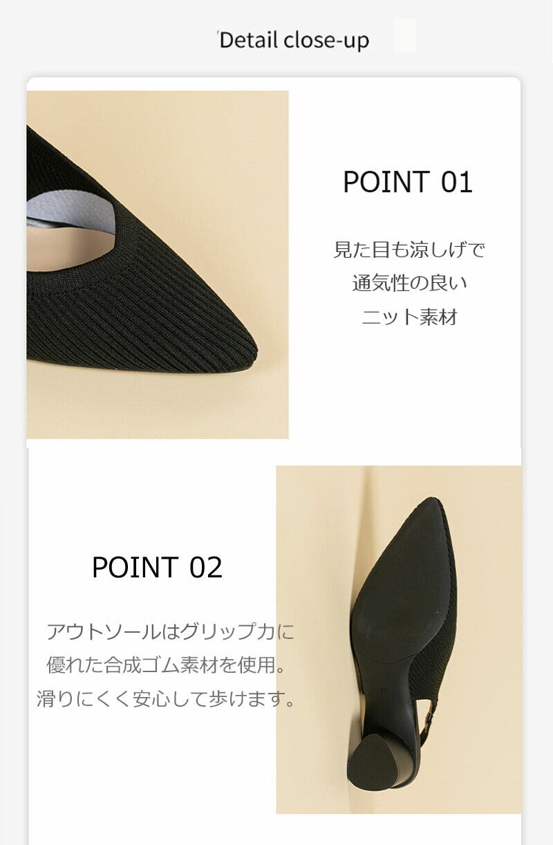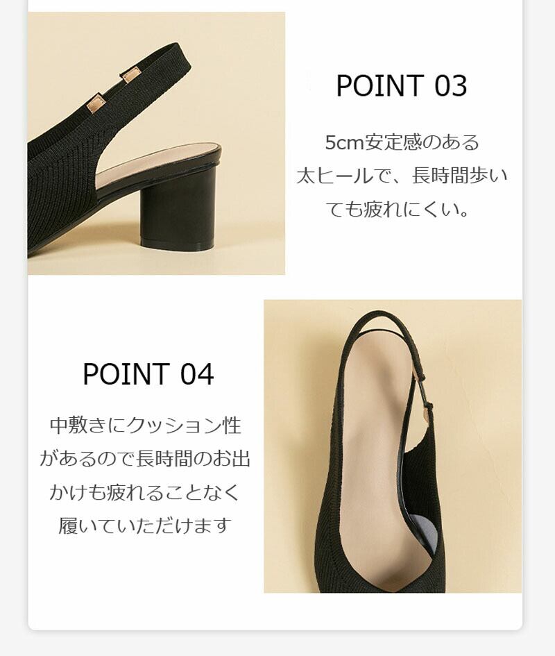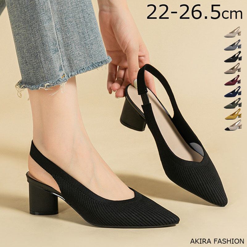 バックストラップ パンプス 痛くない 歩きやすい 走れる サンダル チャンキーヒール 365日しあわせパンプスシリーズ 5cmヒール ストラップ レディース パンプス ニット素材 ポインテッドトゥ 小