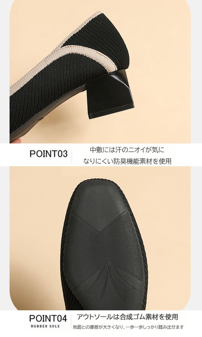 ニットパンプス 靴 パンプス 痛くない 春ブーツ 歩きやすい 走れる スクエアトゥ 4センチヒール パンプス フラット レディース シューズ 柔らか 柔らか ニット素材低反発 小さいサイズ 大きいサイズ 脱げる 20 30 40 50代 送料無料